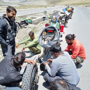 This unique region of India, where the Pakistani, Chinese, Tibetan, and Indian borders meet, is breathtaking, literally so, as we climbed to over 4,700 meters altitude, and all this, for me, on a Royal Enfield, of course, a Himalayan.